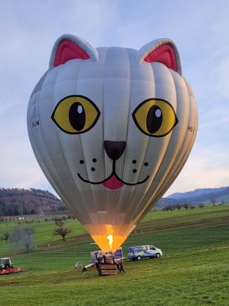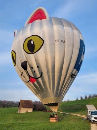 Der HB-BJW ist ein Ballon, den wir 2025 gebraucht in Belgien gekauft haben, damals registriert als OO-BJW. Im Winter 2025/2026 hat die Hülle ein umfangreiches 'Facelifting' erhalten und trägt nun auf einer Seite unser bekanntes Katzengesicht.